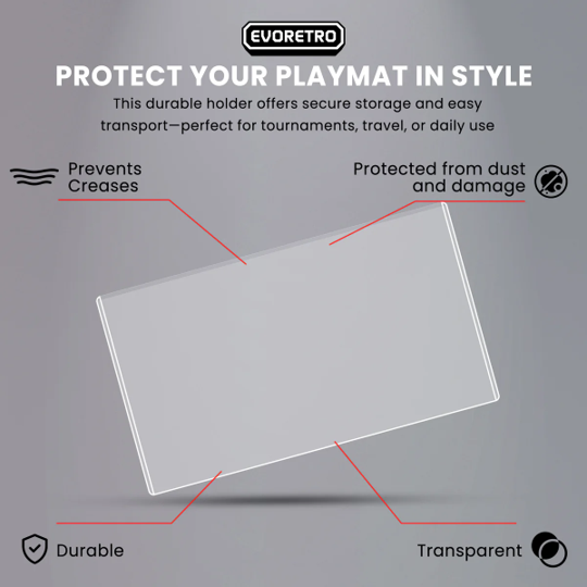 Ensure the longevity and pristine condition of your gaming playmat with the EVORETRO 24" x 14" Playmat Toploader. Designed for dedicated gamers and collectors, this rigid protective holder offers superior protection and a clear display for your playmat.